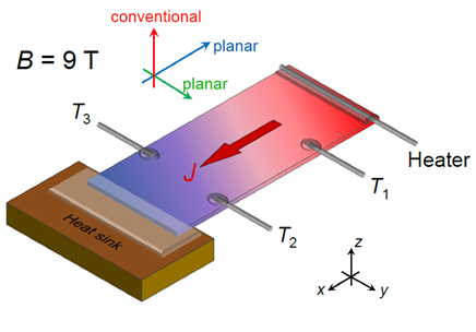近日,我系/应用表面物理全国重点实验室李世燕教授课题组在热霍尔效应研究方面取得重要突破。他们测量了绝缘体SrTiO?、SiO?、MgO、MgAl?O?以及高纯本征半导体Si和Ge单晶,发现这些典型非磁性材料在磁场下均表现出显著的声子热霍尔效应,且均遵循∣κxy∣~κ??2的标度关系,这反映了声子热霍尔效应在晶体中的普遍性。相关成果以“Discovery of universal phonon thermal Hall effect in crystals”为题,于2025年11月3日发表在《物理评论快报》(Physical Review Letters)上,并被选为编辑推荐论文(Editors’ Suggestion)。李世燕教授与我系博士后张旭为共同通讯作者,我系博士生靳小博和博士后张旭为共同第一作者。 霍尔效应作为凝聚态物理中最基本的现象之一,在研究量子材料方面起着关键作用。其基本图像是,导体中的电子在纵向电场的驱动下运动,并在磁场的影响下偏转,产生横向电压。类比于电霍尔效应,温度梯度同样可以驱动准粒子运动,被驱动的准粒子在磁场的影响下产生横向温差,即热霍尔效应[见图1]。除电子外,电中性准粒子同样会被温度梯度驱动,因此热霍尔效应被越来越多地用来研究绝缘体中的电中性准粒子,例如自旋子、马约拉纳费米子、拓扑磁振子等。近十年来,人们陆续在诸多的绝缘体中探测到非零的霍尔热导率κxy,除了有人提出一些奇特的解释如来自马约拉纳费米子、拓扑磁振子贡献之外,也有人逐渐意识到声子在其中起着关键作用。但是,声子产生热霍尔效应的微观机制仍然难以捉摸。对于各种磁性绝缘体,人们普遍认为其中的声子热霍尔效应需要考虑声子与磁环境的耦合。而对于非磁性绝缘体(SrTiO3和黑磷)中的声子热霍尔效应分别被归因于结构畴导致的斜散射,以及各向异性的电荷分布导致的声子与磁场耦合。 图1. 热霍尔效应测量示意图。热流J沿x方向,磁场分别沿三个方向:面外场(B || z)和两个面内场(B || x,B || y)。 为了进一步理清晶体中热霍尔效应的本质,李世燕课题组测量了一系列典型非磁性绝缘晶体,从具有反铁畸变畴的SrTiO?、到具有手性结构的SiO?、再到结构简单的MgO和MgAl?O?,以及高纯度本征半导体Si和Ge。他们出乎意料地发现,所有这些材料在面外和面内磁场下均表现出明显的热霍尔信号,且其温度依赖行为与声子热导率行为高度一致[见图2]。这一系列的实验结果显示声子热霍尔效应是晶体的一个普遍属性,而不依赖于磁性环境、手性结构或缺陷等外因。这一发现挑战了“普通声子作为晶格振动准粒子不受磁场影响”的传统认知,表明原子振动与磁场存在直接耦合。另外尤为重要的是,这些材料的∣κxy∣与κxx2呈正比,展现出统一的标度行为[见图3]。 图2. (a) SrTiO3的零场热导率κxx(T);(b) SrTiO3分别在面外场和面内场下的霍尔热导率κxy(T) (B = 9 T);(c)和(d) SiO2的零场热导率κxx(T)以及SiO2分别在面外场和面内场下的霍尔热导率κxy(T)。SrTiO3和SiO2在三个方向磁场下都表现出明显的声子热霍尔效应,霍尔热导率随温度变化的行为与热导率κxx(T)一致。(e) MgO和MgAl2O4的零场热导率κxx(T);(f) MgO和MgAl2O4在9 T面外场下的霍尔热导率κxy(T);(e) Si和Ge的零场热导率κxx(T);(f) Si和Ge在9 T面外场下的霍尔热导率κxy(T)。所有这些单晶都表现出显著的声子热霍尔效应。 图3. (a)、(b)、(c)、(d) SiO2、MgO、Si与Ge材料中霍尔热导率|κxy|随热导率κxx的变化关系。实验数据均可通过函数|κxy| = Aκxx2进行拟合(红色曲线)。(e) 非磁性绝缘体与半导体的标度律特征。以对数坐标展示这些材料中霍尔热导率|κxy|随热导率κxx的变化关系,其中还包括MgAl2O4与黑磷,以及SiO2三个磁场方向的实验数据,它们都满足同样的规律。为便于对比,各绝缘体与半导体的κxy均乘以一个系数α进行归一化处理。 此项发现表明声子热霍尔效应在晶体中普遍存在,这为理解之前各种材料中观测到的热霍尔效应提供了新的统一视角,而不需要各种奇特的解释如马约拉纳费米子、拓扑磁振子等。该发现揭示了固体物理中此前未被注意的声子与磁场相互耦合的基本物理,未来需要进一步的实验,以及理论上发展新的磁场中晶格振动微观理论,来彻底弄清晶体中声子热霍尔效应的物理起源。该项目受到国家自然科学基金委、科技部、合肥国家实验室、以及上海市科委的资助。 论文链接:https://journals.aps.org/prl/abstract/10.1103/r572-5dfm